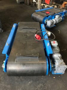 Der Magnetabscheider oberhalb des Förderbandes ist ein Gerätetyp zur Entfernung von metallischen Verunreinigungen aus den mit dem Bandförderer transportierten Materialien. Dank dieser Funktionalität finden die Maschinen dieser Klasse eine sehr breite Anwendung, u.a. beim Metallrecycling, in den Branchen, die mit Mineral-, Keramik-, Kunststoffen verbunden sind, in der chemischen Industrie und in der Landwirtschaft.